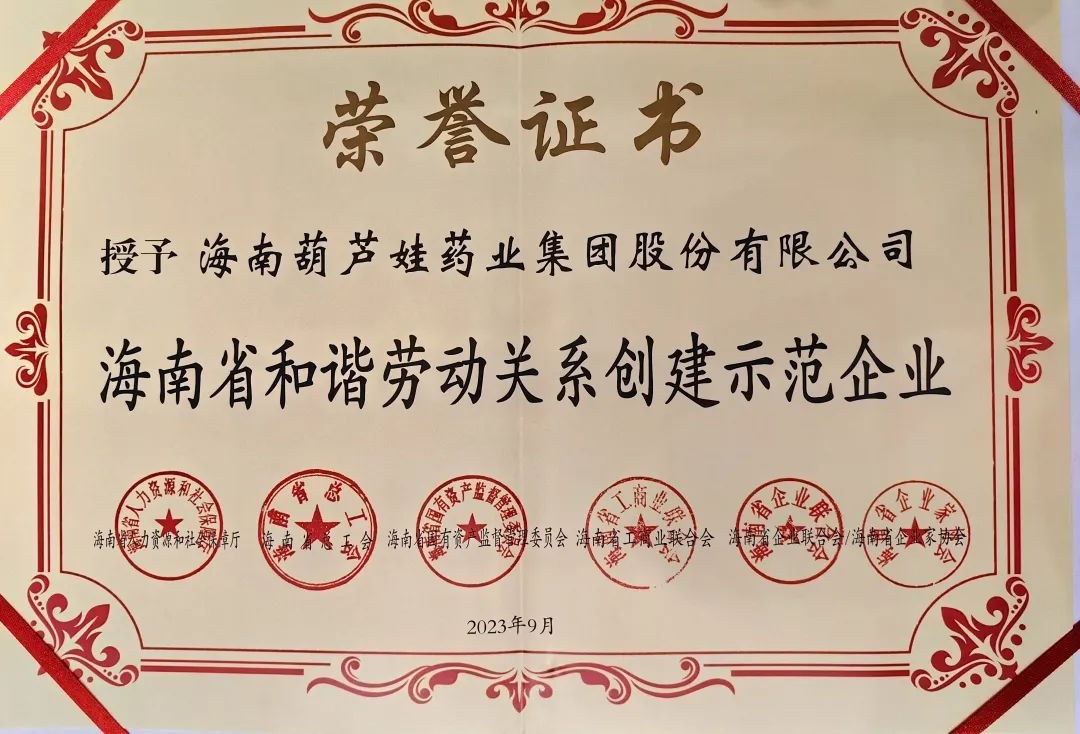 皇冠体育药业集团获评“海南省和谐劳动关系创建示范企业”